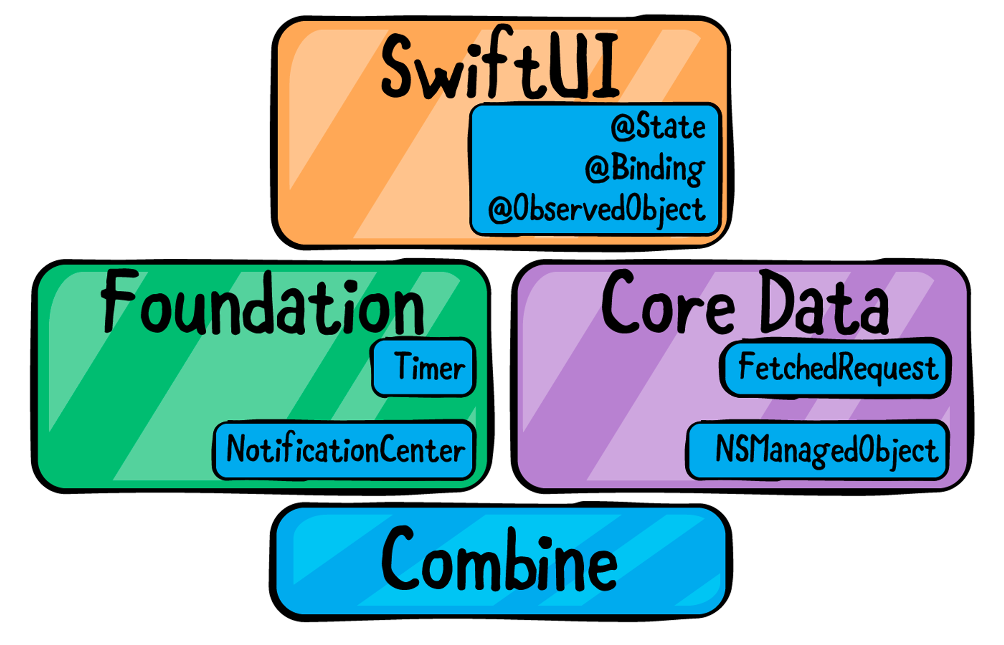 Foundation에서 SwiftUI에 이르기까지 다양한 시스템 framework는 Combine에 의존하며 "전통적인" API의 대안으로 Combine 으로의 통합을 제공합니다.